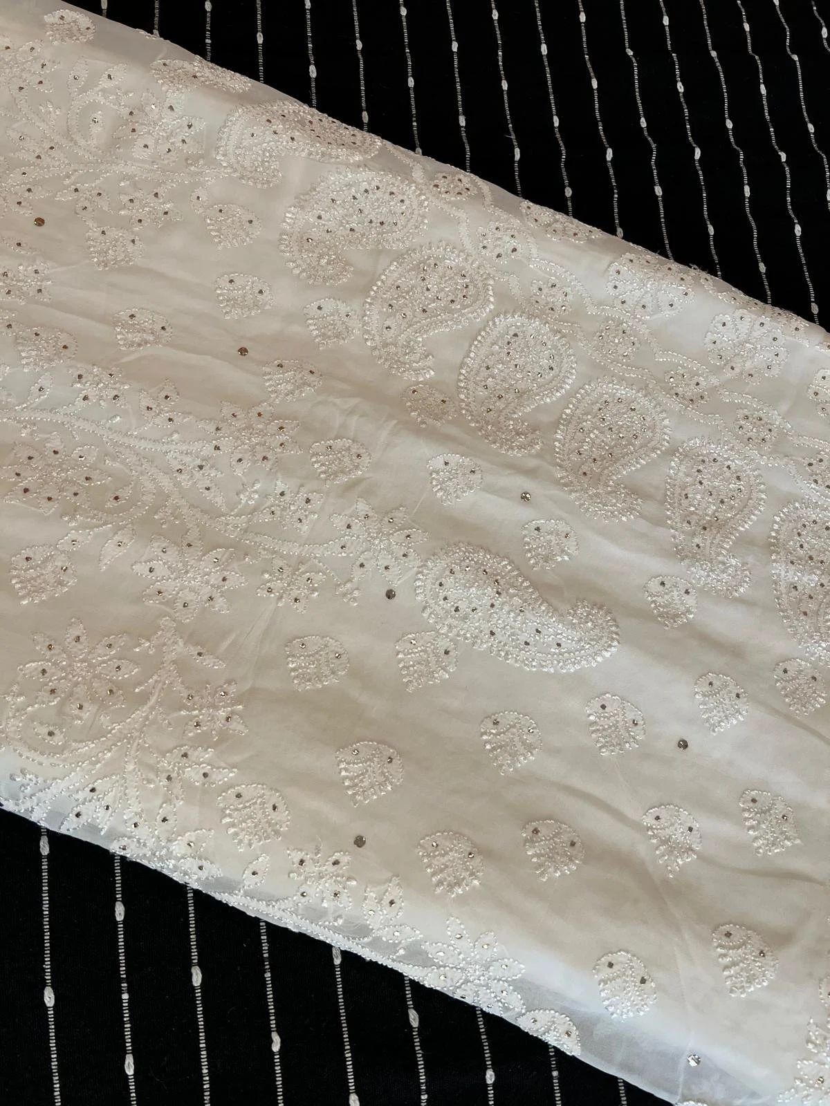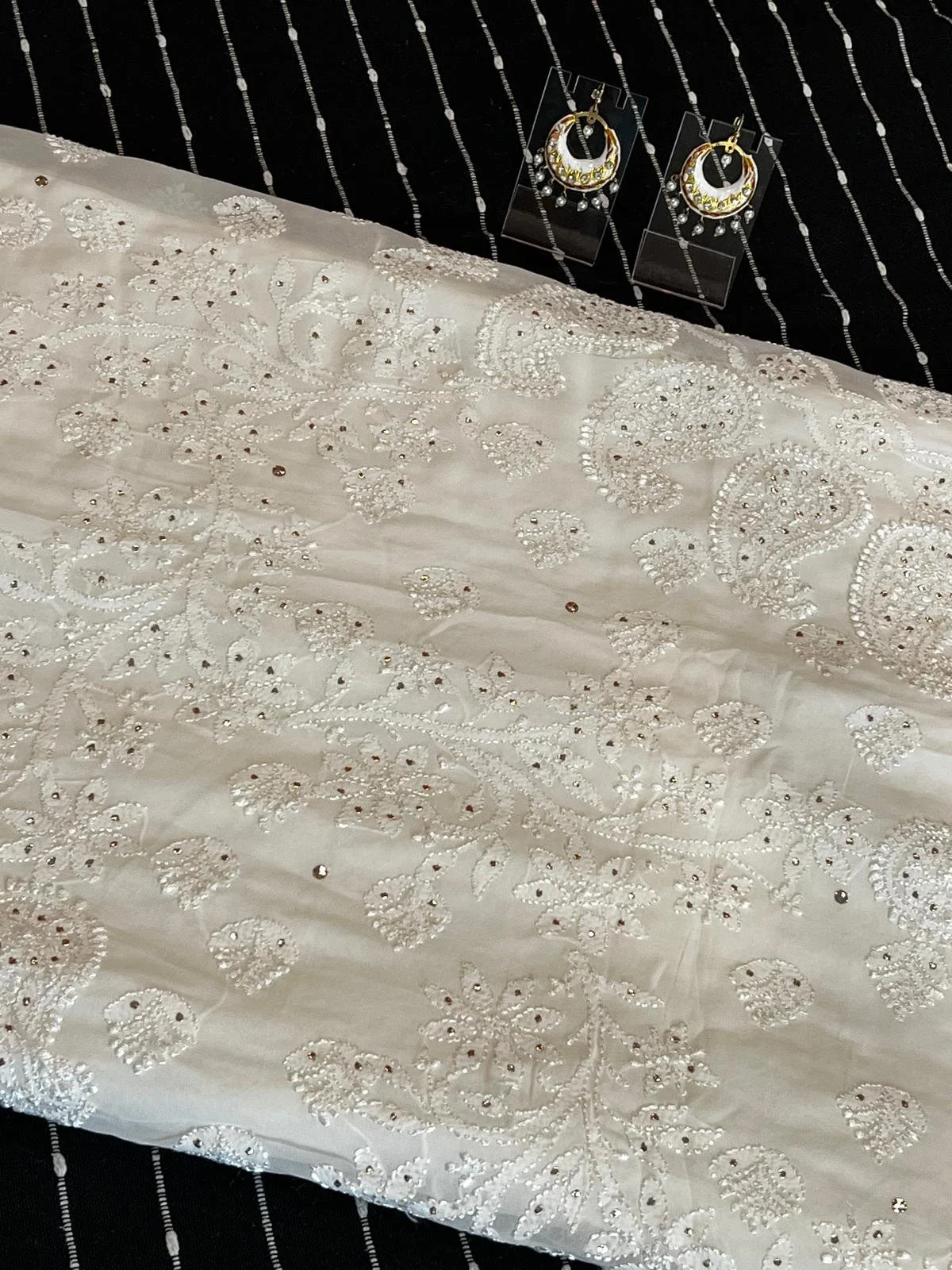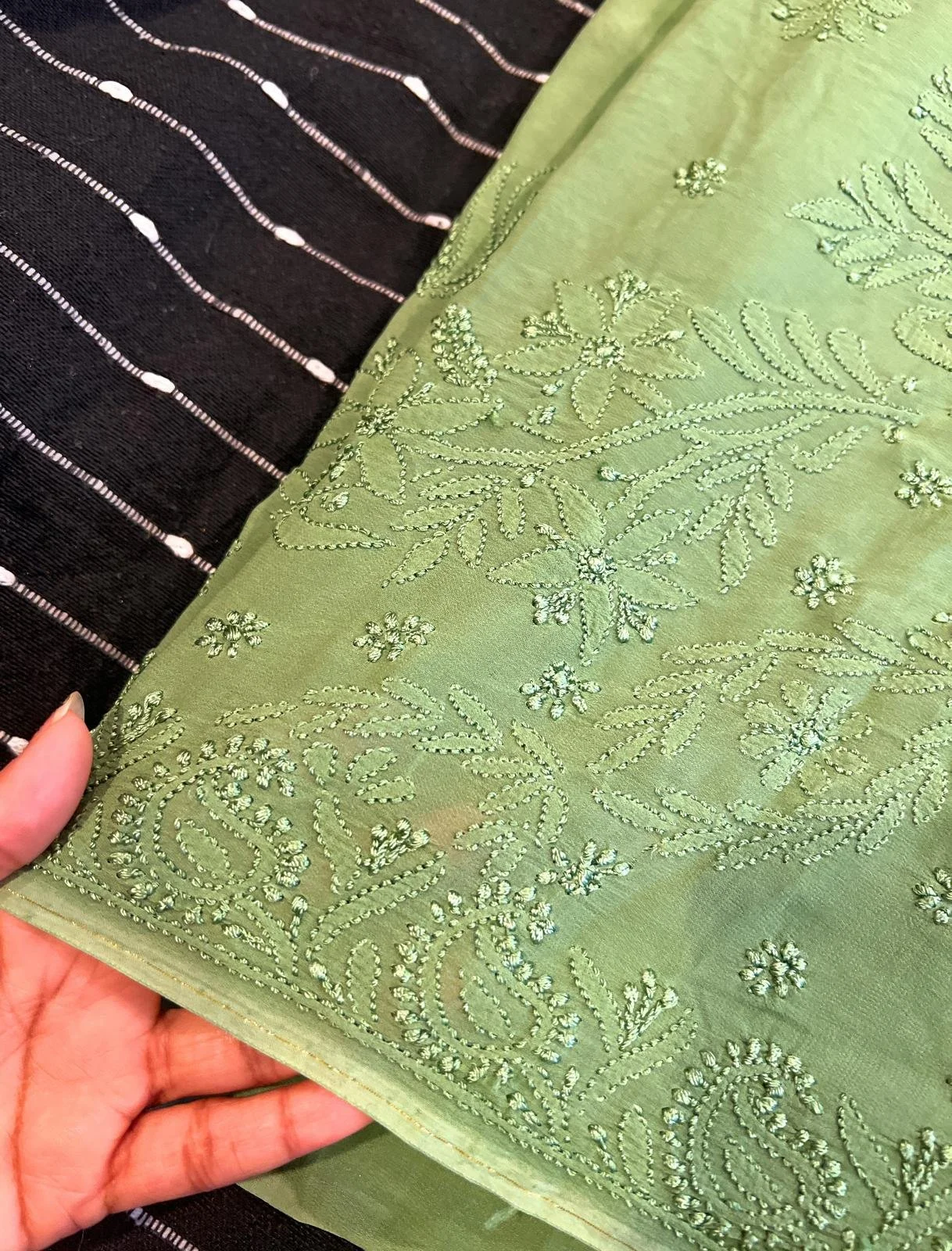 Categories: All Nooré Collection Dupatta/Stole Singlets Kurtas Sarees Canvas Art Original Art Art Prints All Jewelry Handmade Art Jewelry Art Merchandise Handmade Wine Charms Handmade Art Coasters All / Nooré Collection / Indian Hand Embroidered White Chikankari Chiffon Saree with Unstitched Blouse $249.11 Add To Cart Added! Indian Hand Embroidered Ombré Green Chikankari Georgette Saree with Unstitched Blouse $199.11 Add To Cart Added! Indian Hand Embroidered White Chikankari Georgette Saree with Unstitched Blouse $299.11 Add To Cart Added!